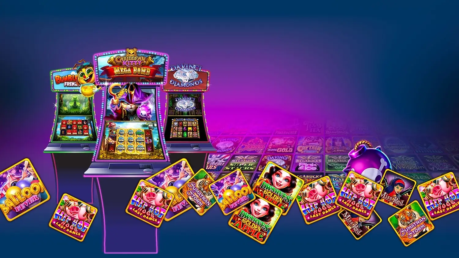 ألعاب السلوتس وهي ألعاب تعتمد على الحظ وتتميز برموز مختلفة تدور على بكرات.
